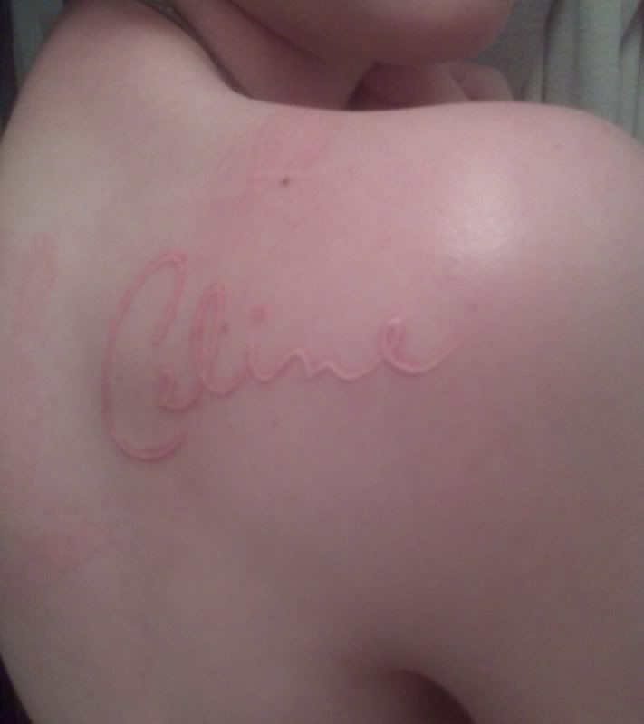 This "dream" tattoo is the first tasteful tat I've seen. Most tattoo's, like 99%, are TOO big. Also, getting Celine's name or, worse, her face tattooed on your body is weird. I know it seems fun at the time, but I have to wonder if anyone is thinking about 10, 20, 40 yrs from now? I don't believe Celine likes it either. I agree with someone who posted earlier about when 2 women show Celine their tattoos. She does not seem happy about it. So, if you are gonna mark up your body, do it realizing it is only for you, not Celine. I am not railing on anyone for getting tats. I have seen some that were cool. But, because I care about people, especially you Celine fans, and many of you are so young, I wanted to say....THINK! Please. Hey that's a good one....."THINK BEFORE YOU INK!"