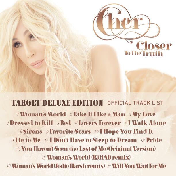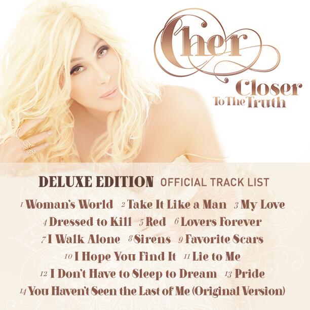 Davey84 Posted August 5, 2013 at 10:43 AM Posted August 5, 2013 at 10:43 AM (edited) Tell The Truth: A Few Thoughts From Cher’s ‘Closer To The Truth’ Listening Party There are pop stars, and then there is Cher. Cher’s enduring legacy as an artist is simply unmatched: With 26 studio albums under her belt (!) and Top 40-charting singles from each decade since the 1960′s (!!), she is truly one of the industry’s living legends.Last evening, I had the distinct pleasure of heading across town to test drive the iconic diva’s brand new studio record due out on September 24, Closer To The Truth. For about two hours, me and about two dozen other journalists and industry types schmoozed, danced and swayed (and indulged in one too many sweet treats) to the sound of Cher's first studio album since 2001's Living Proof[/i; including Matt from Boy Culture and my Cosmo boo, Sergio. Sadly, I still have to keep mum on a majority of the record (as per Liz Rosenberg‘s direct orders — and I’m not about to cross Liz), but there are some things I’m allowed to discuss. And so, some initial thoughts. http://www.muumuse.com/wp-content/uploads/2013/08/cherlisteningparty.jpgI ate a lot of that candy.For one thing, Closer is a healthy between punchy, uptempo dance tracks (including “Woman’s World”) and big, emotional balladry — a half-breed, one might say. The dance tracks are all fierce, stomping club-pop anthems with equally fierce names: The most instant highlight, though, is “Take It Like A Man,” which — as I breathlessly tweeted during the party — is clearly a new gay anthem from the get-go. (Then again, you probably could have assumed as much from the title alone.) It’s a very big, anthemic call-to-arms for the dance floor, a la “Song For The Lonely” — except rather than being a dedication to the lonely, it’s about those who, err… take it. There’s plenty of variety to get truly excited about, including not one, but two songs penned by P!nk (who assists with background vocals on one). One of the two is called “I Walk Alone,” which has a defiant chorus that sort of reminded me of Geri Halliwell‘s Lots o' sass. The ballads, though, are where Cher’s diehards will likely be beside themselves. (The term “classic Cher” came up quite frequently throughout the night.) There’s big, bold chops on this record — especially on the slower numbers, including a heartfelt dedication to 9/11 and “I Hope You Find It,” a devastating post-break up coming-to-terms that underscores why Cher’s the original #GrownWoman. While classics like “Believe” obviously remain immaculate, Closer To The Truth is also closer to the natural vocals — no real Auto-Tune play to be found here. A little more organic, one might say! (And no, the Gaga duet is not on the album because Gaga didn’t like it, which Cher already addressed on Twitter.) Though it’s obviously hard to make a solid assessment from only one spin or two in the middle of a party (and a few glasses of Prosecco), the impression I got from the smiling faces and tapping toes (my own included!) was that Closer To The Truth is going to be a genuine fan pleaser. The uptempos will serve nicely at the gym and getting ready for a big night out, and the ballads will serve nicely for a good ol’ 4 AM sob session. It’s danceable, it’s heartfelt — and most of all, it is very, very Cher.Thanks again to everyone at Liz Rosenberg Media for a fabulous Cher fest! I had an absolute blast. (Oh, and Liz, I hacked your computer and stole every Cher and Madonna demo from the past 30 years — hope that’s not awkward.) Closer To The Truth will be released on September 24. (iTunes) http://www.muumuse.c...ty-review.html/ the bold parts sound very promising! that take it song, has to be asssome! Edited August 5, 2013 at 10:45 AM by Davey84 Quote http://img.photobucket.com/albums/v75/daveyh84/incognito198701_zpsaaootxh1.jpgRick, ik hou van jou voor altijd!A New Day... has come 28/29 April & 2/3 May 07Antwerpen 13 et 14 mai,Paris 24 et 25 mai, Amsterdam 2 juinet Arras 7 juillet Chances Taken!!!How Do You Keep The Music Playing? - Celine Opening Night March 15th, March 16th