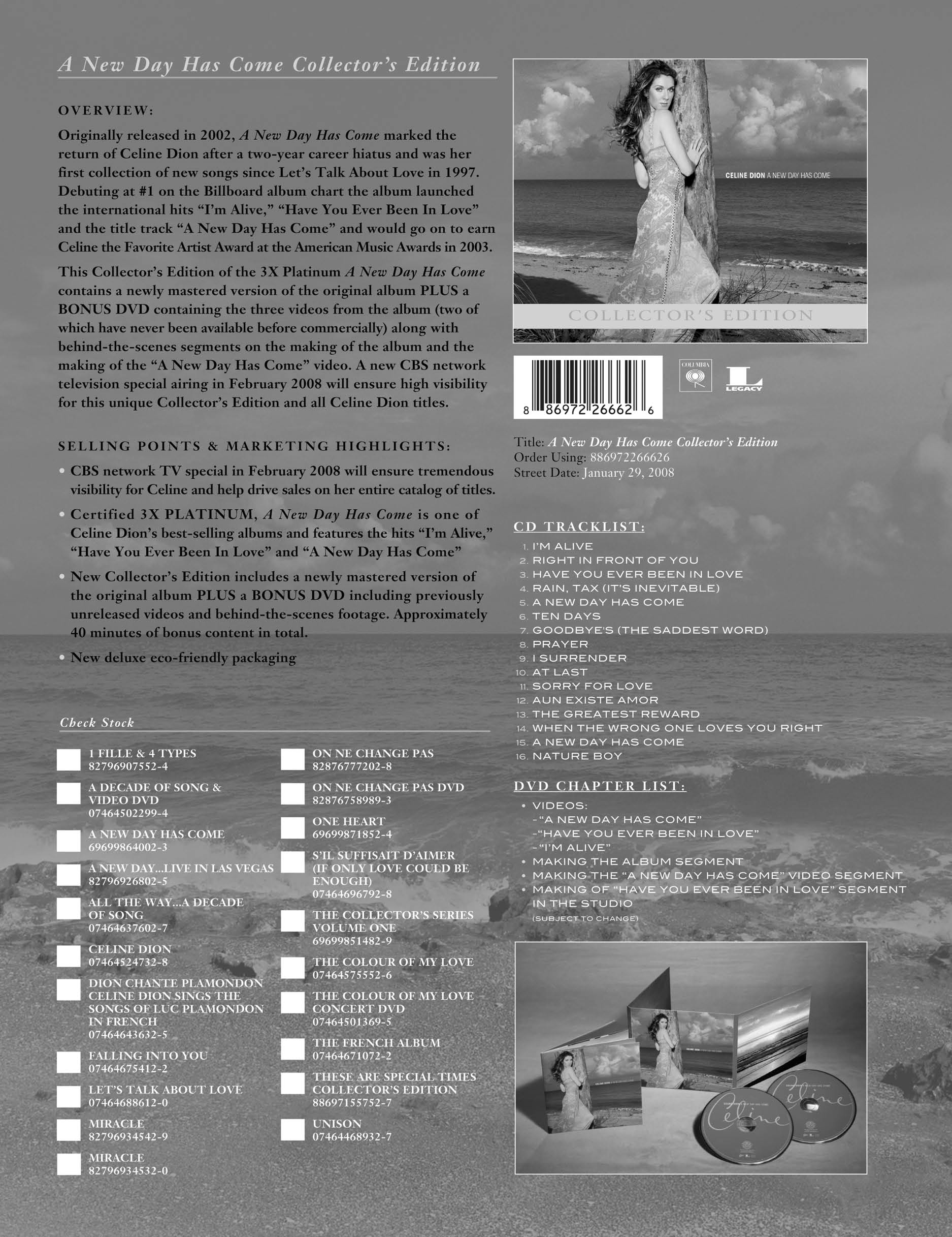 Celine Fan 77 Posted March 26, 2017 at 07:48 AM Posted March 26, 2017 at 07:48 AM Maybe her official accounts won't remember today and tomorrow, but Legacy Recordings is celebrating the anniversary on their Facebook account Just a reminder that Legacy Recordings is a Sony Music branch for their old catalogue that rereleased the ANDHC album in 2008 in a beautifully presented "Collector's Edition". It's interesting that they considered that a CBS special mainly focused on the 'Taking Chances' album would make the sales of a new collector's edition of 'A New Day Has Come' grow Quote Tournée Européenne in Paris (December 1, 2013)Céline Dion Live 2016 in Antwerp (June 20, 2016)Céline Dion Live 2017 in Birmingham (July 27, 2017)
