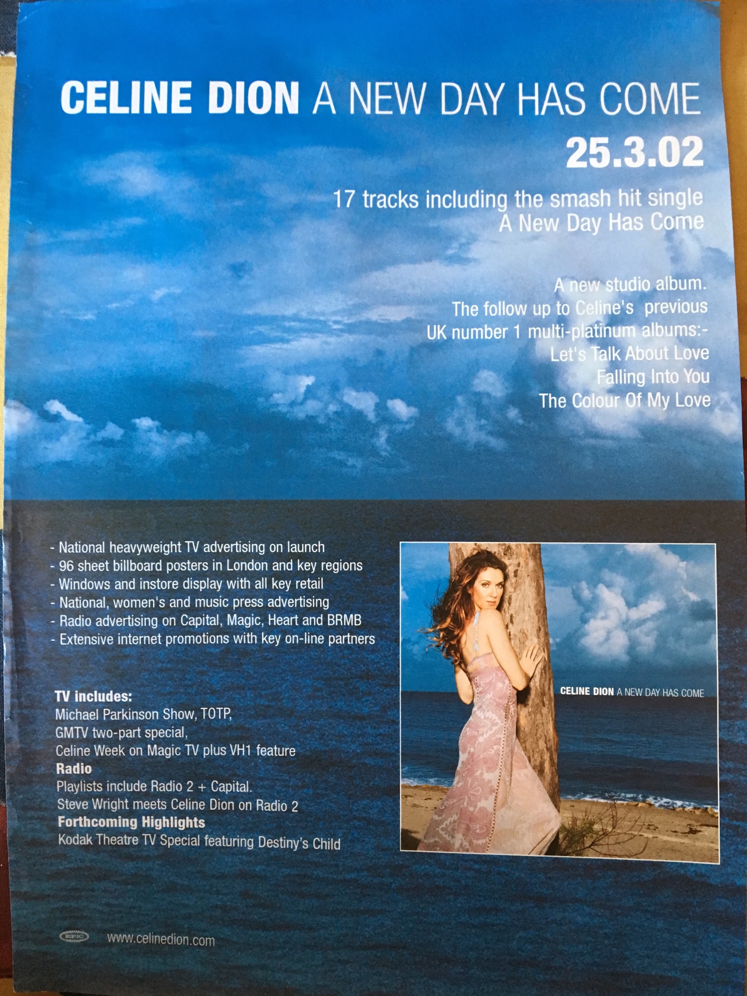 Peppercorn1991 Posted April 7, 2019 at 04:58 PM Posted April 7, 2019 at 04:58 PM This is an ad for the UK from HMV stores, and here's how they marketed the TC as well as selected rereleases available back then (those days ), and among them there's the ANDHC 2008 Collector's Edition, marketed with this description: "A stunning album which topped both the UK and US charts and launched the hits "I'm Alive", "Have You Ever Been In Love" and the title track "A New Day Has Come". Also the triple pack including the albums FIY, LTAL and ANDHC say "3 UK #1 albums with combined sales of almost 4.5 million... Smash hits included: My Heart Will Go On and A New Day Has Come". Of all the hits that packed these three best selling English albums of Celine, they chose ANDHC to be highlighted next to MHWGO. Must be for some good reason Dedicated to all the naysayers who still question how big the singles ANDHC and also equally I'm Alive were (and are) in the collective memory of those working in the music business I’ve got like 3 copies of this leaflet haha. I remember getting excited when I found it on my seat in Manchester (MEN) Kev x 1 Quote