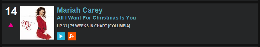 LuisMa Posted December 8, 2013 at 06:02 PM Posted December 8, 2013 at 06:02 PM "All I Want For Christmas Is You" zooms up the UK chart, moving 33 spots to land at #14! 2 Quote