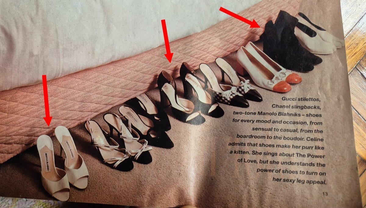 Matias Posted April 21, 2026 at 12:21 PM Posted April 21, 2026 at 12:21 PM On 4/21/2026 at 8:49 AM, drove all night said: I don't know, dear Matias! Some years ago I tried to find them but I stopped very quickly - too much ugly feet in those (IMO) ugly and uncomfortable shoes. There is only certain amount of my nerves to search for something which gives me even physical pain only looking at it. I wonder if she regretted to chose them for the Red Carpet of the Grammy's in 1999. It's one thing to wear them for a photo shoot - but just looking at this last picture with the squashed toes only one word comes into my mind: Ouch! I briefly gave it another try - but only to verify that I still don't have the nerves for such a investigation. It could well be they are Manolos - they had clear lucite mules with transparent "non-Blahnik-typical"-heel in one of their collections. But I don't have a clue. As much as I would love to help you - but this time I have to refuse. No nerves to see again all those ugly squashed feet! But if you like to give it a try, I can at least offer you a HQ pic of the McCall-session Haha you know Celine "What size are you ma'am"? - No, what size do you HAVE?" 1 2 Quote http://24.media.tumblr.com/tumblr_maic6m257V1rbfceqo2_250.gif"No no, put it back..."
