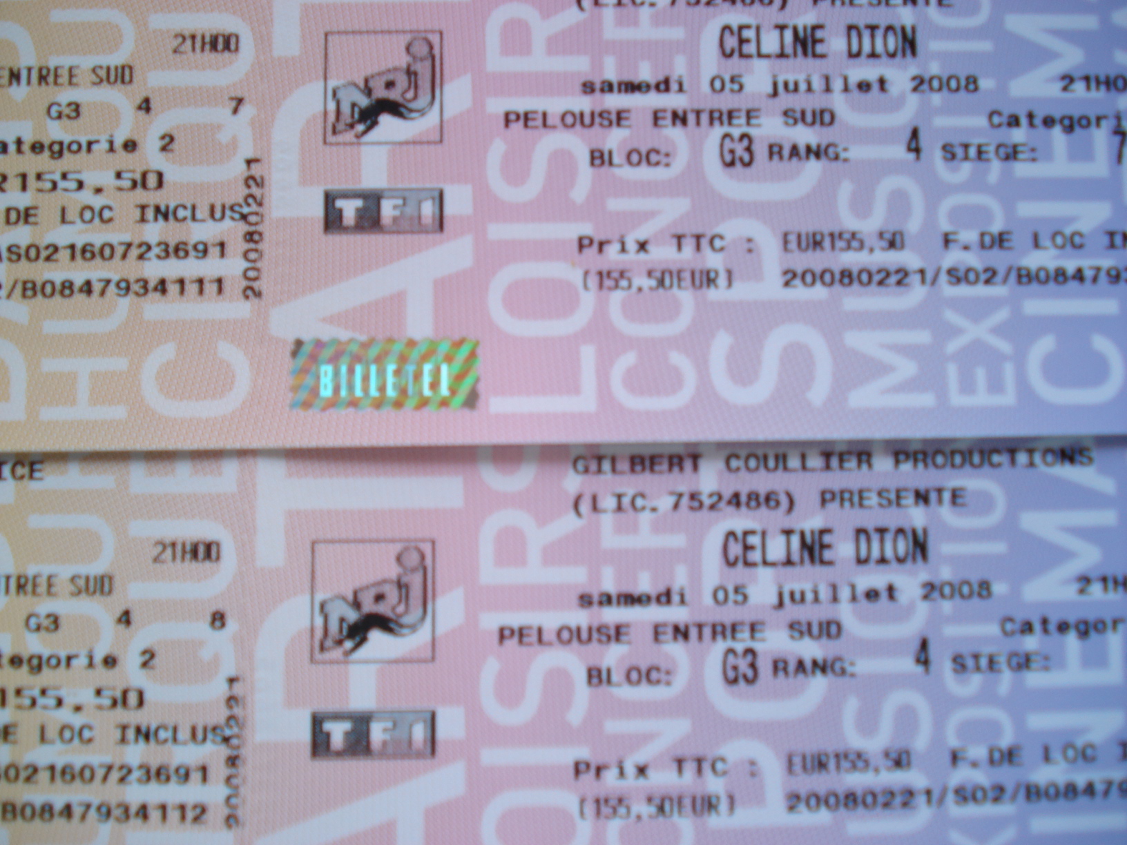 boldair06 Posted July 1, 2008 Posted July 1, 2008 je vends cause maladie deux places categorie 2 bloc G rang 4 places assises 7 et 8 face a la scene achetée 155.50€ la place vendue 150.00€ l'une.Bon spectacle a tous Quote