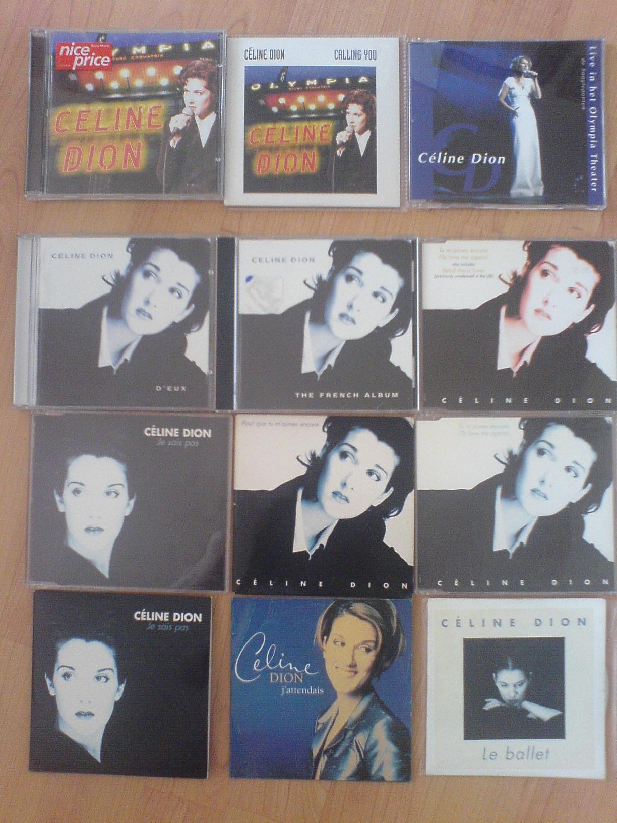 celinelover50 Posted October 21, 2007 at 01:04 PM Posted October 21, 2007 at 01:04 PM A L'olympiaCalling You (Card Sleeve)Live In Het Olympia Theater Promo D'euxThe French Album Tu M'aimes EncoreTu M'aimes EncoreTu M'aimes Encore (2Track Card Sleeve)Je Sais PasJe Sais Pas (2Track Card Sleeve)Le BalletJ'attendais Live A ParisLive A Paris Japan editionJe Sais Pas (Live)Les Derniers Seront Les Premiers (Live) Canadian 1Trk Quote http://i154.photobucket.com/albums/s264/celinelover50/celine/TEOL_Sig.jpg