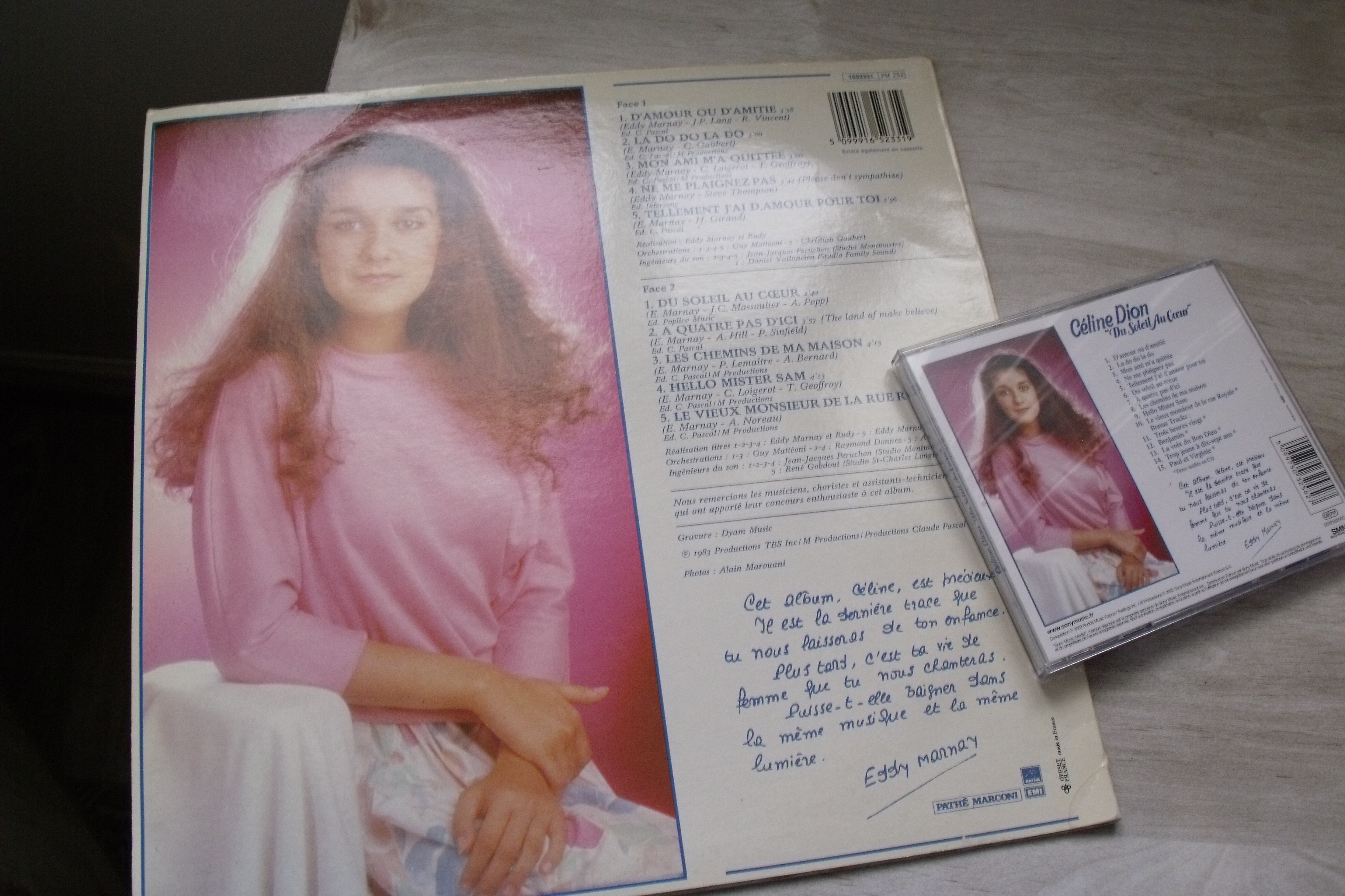 Yakir Posted May 18, 2012 at 12:23 PM Posted May 18, 2012 at 12:23 PM Du Soleil au Coeur vinyl and 2002 CD (with 5 bonus tracks) both of them from France Quote This sentence says it ALL and starts allUne voix d'or dans un Cœur enfant http://upload.wikimedia.org/wikipedia/en/6/6a/Celine-Dion-Ce-Netait-Quun-Re-125278.jpeg