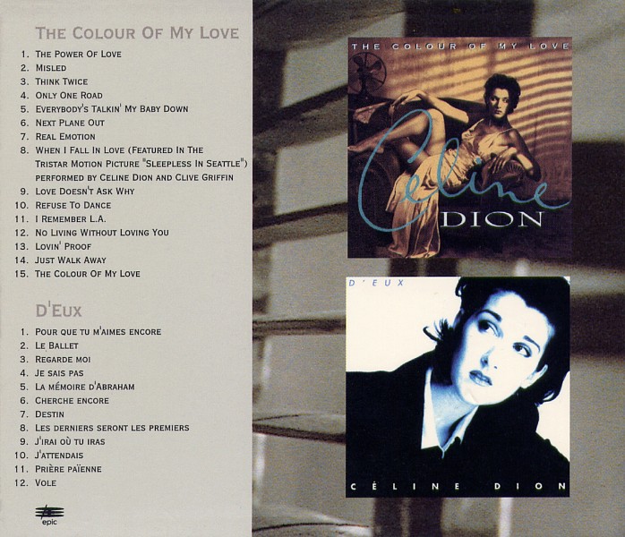 celinefanonline Posted April 19, 2008 at 10:09 AM Posted April 19, 2008 at 10:09 AM as promised here's the scan for Australian The colour of my love / D'eux box set!Ps: both cd r actually euro version!!! for D'eux at the back of the booklet.. there's fold out page with Celine's concert in france and something!!! this one is the Canadian version of Celine Dion self title album disc Quote Courage don't you dare fail me now!