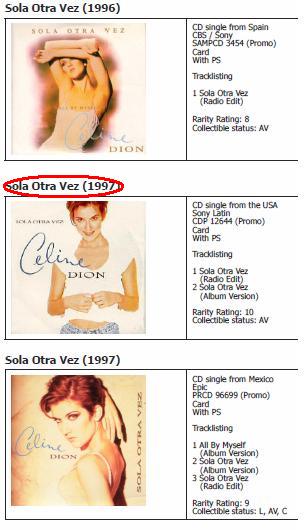 Jeanine Posted December 26, 2008 at 09:51 PM Posted December 26, 2008 at 09:51 PM A quick question, can you tell me which Sola Otra Vez promo is the rarest? (or sort them in order of their rarity?) Out of the Collector's Guide, the red-lined one is the rarest: Quote http://g-ecx.images-amazon.com/images/G/01/music/entity/platinum/celine_dion_banner_cropped.jpg Order NOW