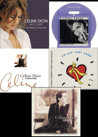 Andy Posted December 31, 2008 at 04:20 PM Posted December 31, 2008 at 04:20 PM I got these yesterday:- Voices that care (cd single)- Zora sourit (promo)- S'il suffisait d'aimer sampler (promo)- My love The essential collection (UK promo)- On ne change pas (cd single) Quote http://people.freenet.de/celinecharmed/Charmdceline/Celine2.jpg