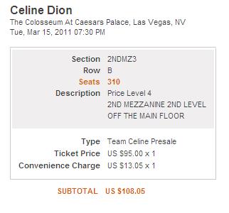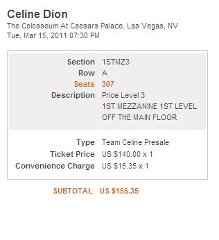 whineupemily Posted February 10, 2010 at 05:22 PM Posted February 10, 2010 at 05:22 PM Can somebody do me a favor and see what they have for 1 95 dollar ticket I do not have a Team Celine account I was going to Join of they had those tickets?Thankshere you go:What about 140? Quote