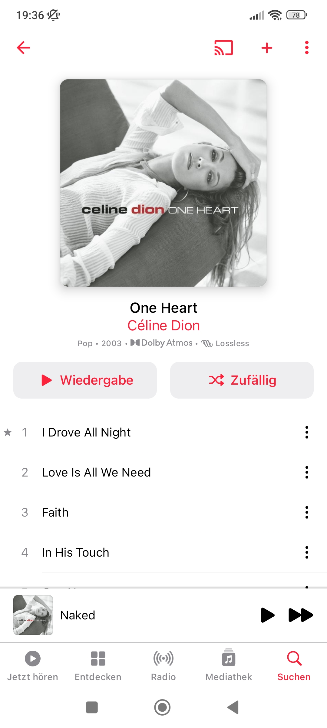 HannesMUC Posted April 18, 2023 at 05:16 AM Posted April 18, 2023 at 05:16 AM One heart is unfortunately not available in Dolby Atmos on Apple Music. Available in Dolby Atmos on Apple music are: - Courage- Loved me back to life- Miracle- A new day has come- These are special times- Let's talk about love- Falling into you- D'eux In germany it is... Quote