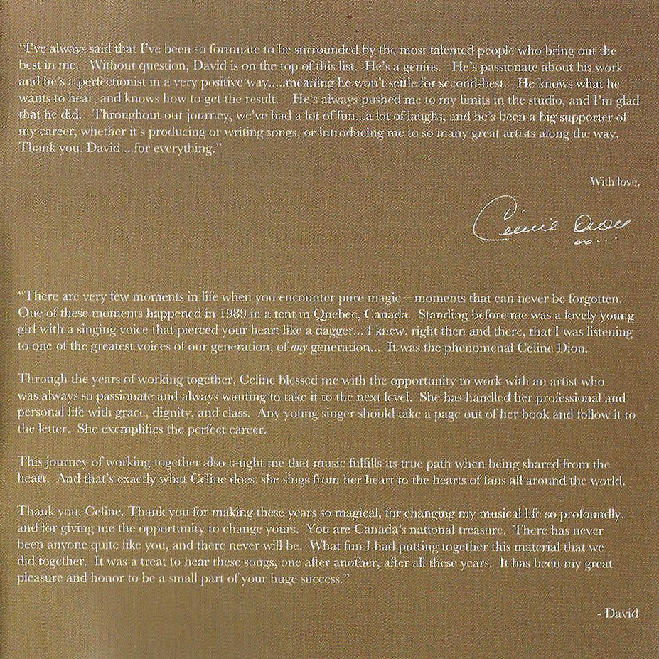 Javito Posted November 11, 2012 at 06:23 PM Posted November 11, 2012 at 06:23 PM I've still ordered a copie of this CD next with the deluxe french album in WOWHD. It was shipped the 1st of november, so it should arrive anytime soon according to their delivery time frames. Agree about "Have A Heart" missing here. I would also have enjoyed "The Last To Know" in this collection, though I guess this song breaks the mold with the kind of standard ballads they have picked, since its more a "hearbreak" song. But the neglection they have with her old material, both in compilation CDs like in concerts as well is just annoying some times. I wonder if either Céline or René ever revisit her albums to check the songs for whatever purpose, arrangements, people who participated etc, and if they will stop to listen these songs sometime? Would love to know the answer and what would be their reactions Quote "Hush, now... I see a light in the sky"