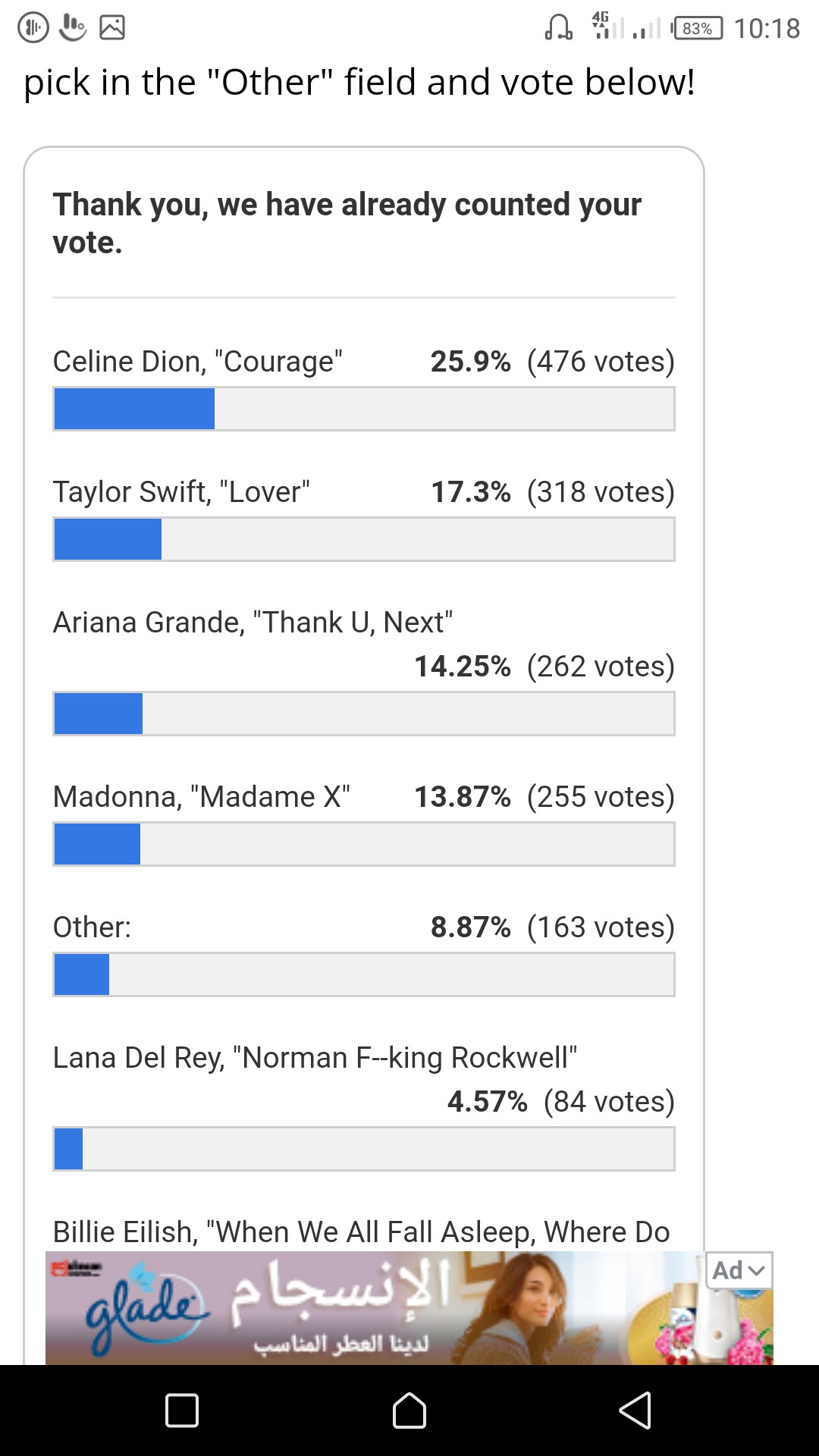 MMorshedu Posted December 12, 2019 at 08:19 AM Posted December 12, 2019 at 08:19 AM Please vote, thank u πhttps://www.billboard.com/articles/news/8546031/2019-album-of-the-year-poll?utm_source=facebook&utm_medium=socialThe results so far. Quote