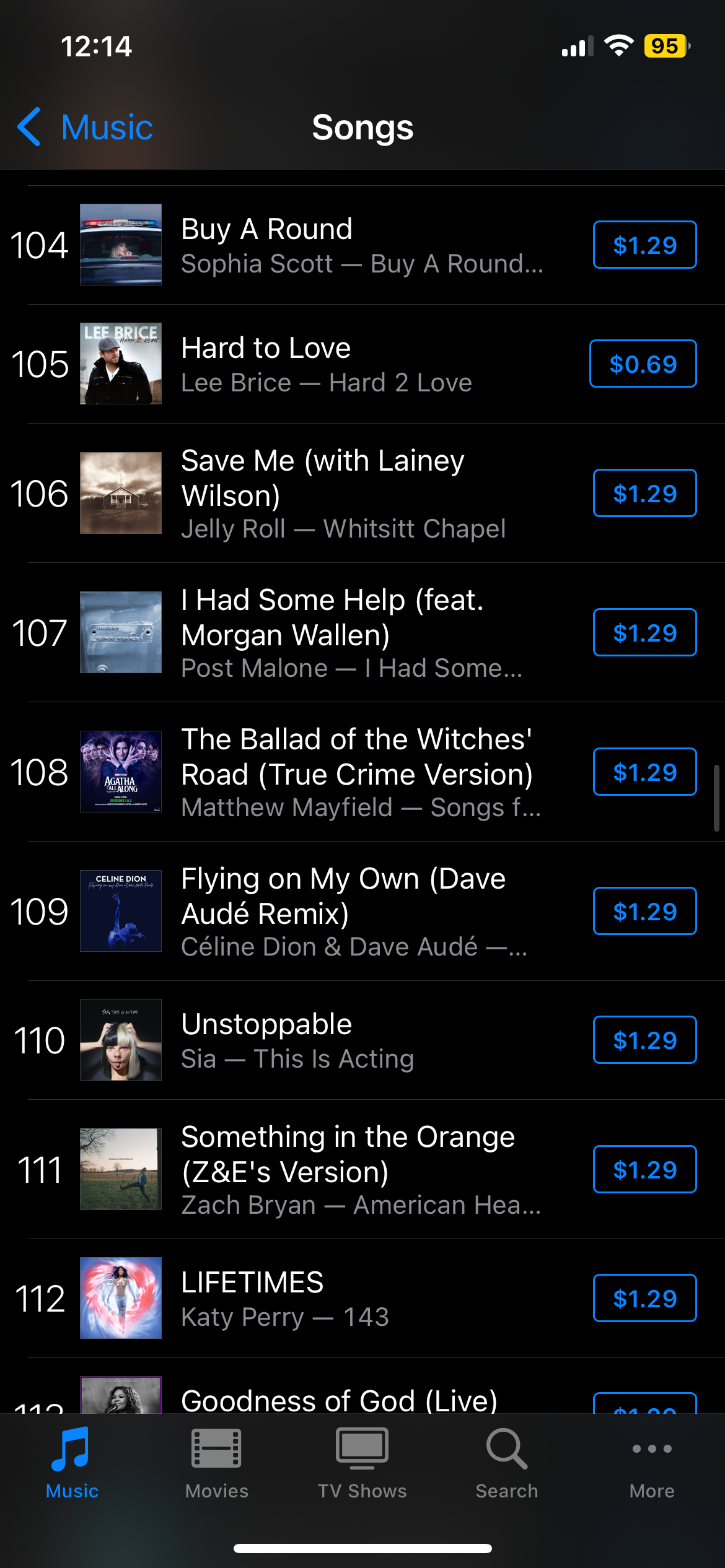 TommKat22 Posted September 22, 2024 at 09:31 PM Posted September 22, 2024 at 09:31 PM Does anyone know why the Dave Aude version of Flying on My Own is currently at #109 on US iTunes? Lol. I know there aren’t a lot of sales on iTunes anymore, but it’s outselling tracks from Katy Perry’s new album too, so I’m surprised. Especially such a random 5 year old song? Lol Up to #81 now 🤔 2 Quote Tommy