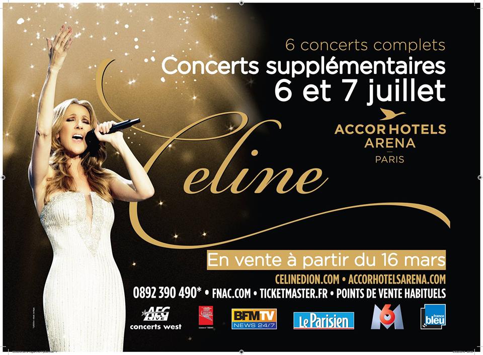 Davey84 Posted March 9, 2016 at 08:45 AM Posted March 9, 2016 at 08:45 AM (edited) Additional shows on July 6th and 7th in Paris are confirmed! The tickets will go on sale on March 16th! Celine to perform two additional shows at the AccorHotels Arena in Paris on July 6th and 7th, 2016! Celine has announced an additional shows at the AccorHotels Arena in Paris on Wednesday, July 6th and Thursday, July 7, 2016. General public sale will start on Wednesday, March 16, 2016, at 10:00 am (CET) at the usual points of sale. Get your tickets before anyone else with our Exclusive TeamCeline Pre-Sale! TeamCeline members have an exceptional advantage; members have the opportunity to purchase tickets before the general public. The TeamCeline pre-sale will start on Wednesday, March 9, 2016, at 10:00 am (CET) and will run until Tuesday, March 15, 2016, at 10:00 pm (CET). Not a TeamCeline member? Don’t worry! Join now and get your tickets before anyone else! Membership is free! Edited March 9, 2016 at 08:47 AM by Davey84 Quote http://img.photobucket.com/albums/v75/daveyh84/incognito198701_zpsaaootxh1.jpgRick, ik hou van jou voor altijd!A New Day... has come 28/29 April & 2/3 May 07Antwerpen 13 et 14 mai,Paris 24 et 25 mai, Amsterdam 2 juinet Arras 7 juillet Chances Taken!!!How Do You Keep The Music Playing? - Celine Opening Night March 15th, March 16th