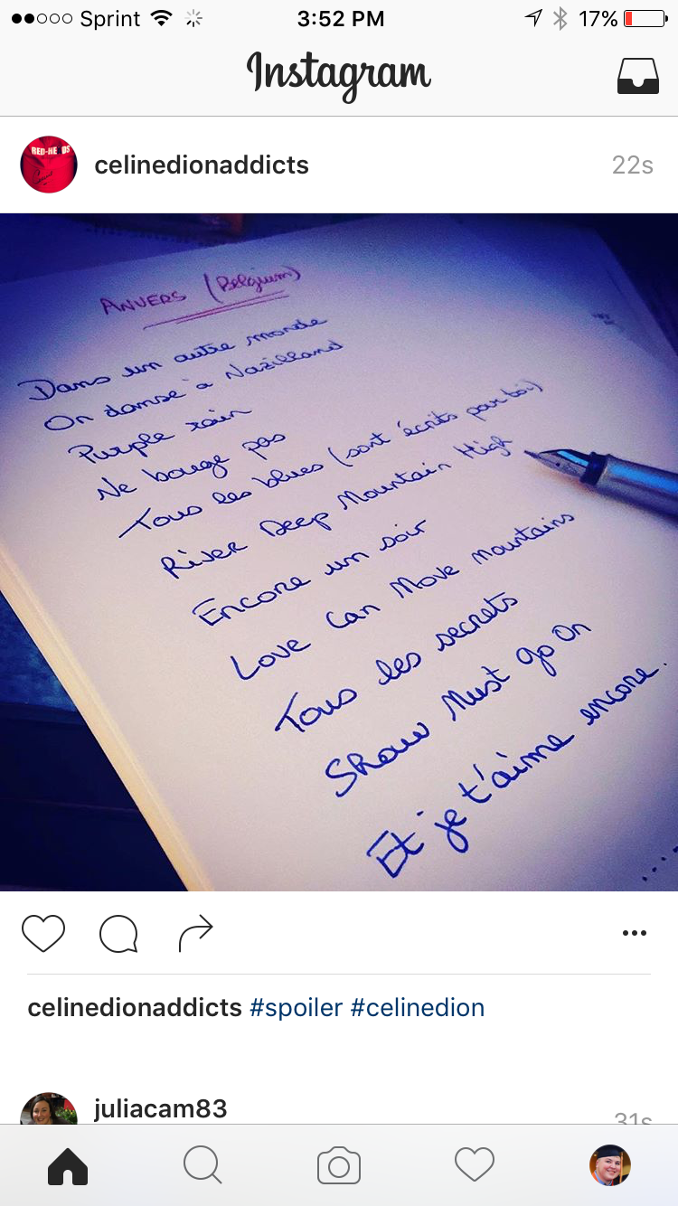 CelineDionFreak Posted June 19, 2016 at 07:54 PM Posted June 19, 2016 at 07:54 PM (edited) OMG LOOK AT THIS SETLIST YOU GUYS!!!! So many GREAT songs!!! Edited June 19, 2016 at 07:58 PM by CelineDionFreak 5 Quote I didn't know love until they loved me back to life because somebody loves somebody!Le temps qui compte pour Celine est maintenant!