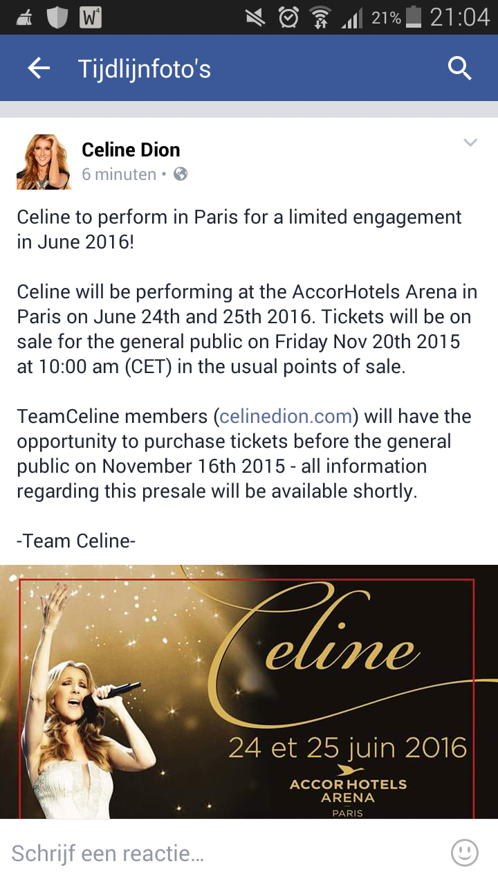 Davey84 Posted November 11, 2015 at 08:07 PM Posted November 11, 2015 at 08:07 PM Finally official confirmation!!! Presale Monday! 2 Quote http://img.photobucket.com/albums/v75/daveyh84/incognito198701_zpsaaootxh1.jpgRick, ik hou van jou voor altijd!A New Day... has come 28/29 April & 2/3 May 07Antwerpen 13 et 14 mai,Paris 24 et 25 mai, Amsterdam 2 juinet Arras 7 juillet Chances Taken!!!How Do You Keep The Music Playing? - Celine Opening Night March 15th, March 16th