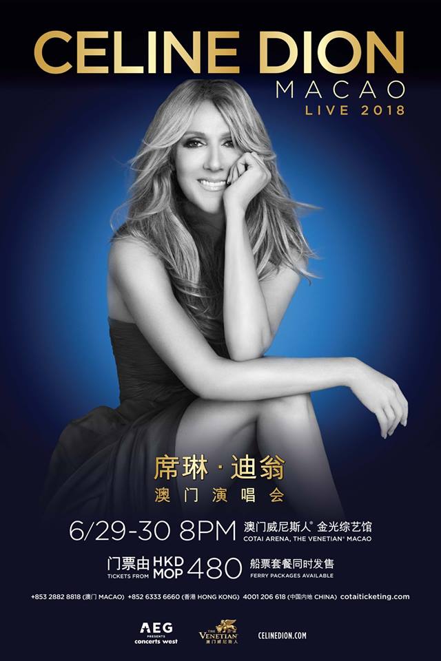 cwnice Posted February 24, 2018 at 03:03 PM Posted February 24, 2018 at 03:03 PM Celine is all around in Macao, especially in Cotai Arena, The Venetian Macao, where will be held the show. Posters and billboards we can see. But no tickets is yet to sell. No announcement. I asked a staff and she didn't know yet. 1 Quote If there was Diva Live, I would suggest Celine Dion + Shania Twain + Faith Hill + Barbra Streisand + Delta Goodrem