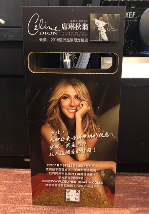 celinefanonline Posted June 5, 2018 at 02:10 PM Posted June 5, 2018 at 02:10 PM Sony Music (Asia) has competition for the Asian fans to win official merchandise and meet and greet with Celine!here's the website!! https://www.celinedionasia.com/ add the spotify playlist and answer a simple question (not as simple as it seems to me lol) for a chance to win the official merchandiseapparently 10 winners out of all 6 cities! join fans across Asia in sending a personalised message to Celine before 22nd June and be in with a chance to meet Celine in person! (1 winner for each city)(all submissions will be digitalised and turn into a mosaic that will presented to Celine in person)Guideline:all submissions should be paper (photographs, drawings, letters etc) and no larger than A 3 format the location to drop off the gift / message can be found on the website! participate cities are Hong Kong, Taipei, Singapore, Manila, Jakarta, Bangkok here's the drop box in Taipei! Quote Courage don't you dare fail me now!