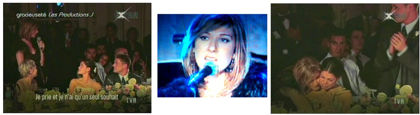 VintageCeline Posted May 21, 2010 at 11:53 PM Posted May 21, 2010 at 11:53 PM OMG I am SO slow !! I only just realised that Celine wrote the song 'Tout près du bonheur'. Thhaatt is the song she sang at Marc and Anne Maries wedding. Did anyone ever see that video on Celine singing that at their wedding? She was pregnant with hair just above her shoulders. It got deleted from YT ages ago Yes. It's such a pitty it had been removed ... but I saw it and made some screencaps than. Not very good. But indeed very rare. Here the lyrics of the little piece: "When I met you You were just a little girl, my baby More than just a stranger in my eyesBut then, also quickly you grew up before meGirl how you became part of my life [.......] And now,as I carry life deep within meSo uncertain what the life can doAnd me, I pray to God for just one wishThat our childBe just like you And I, I'm gonna love you foreverAlways togetherYou'll never be far away from my heart" Thank you for the pictures http://24.media.tumblr.com/94198518f8a09aef1d336d6fde8fc8b3/tumblr_mkdcezs36X1r7lwiso1_400.jpg