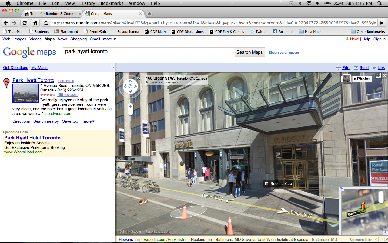 riobeard11 Posted May 23, 2010 at 05:18 PM Posted May 23, 2010 at 05:18 PM I found a video a while ago, with Celine in Toronto. It was the first night of her concert in Aug 2008. It shows her hotel that she stayed at in the backgrownd, but it doesn't show it very well. I thought that could help someone try to locate what hotel Celine stayed at while she was in Toronto on Aug 27, - Aug 28, 2008. The link is on you tube, titled. Celine Dion Signs For Fans After Toronto Concert. I hope someone can help me figure out what hotel she stayed at I would truly be gratefull!!Thanks agian, Kathleen. Must be easy for someone who lives there. The doors are quite unique .... I did some intense Google Street View research...but couldn't pinpoint the hotel There were two that I couldn't see clear shots of the doors because they were not on the street but set back quite a bit: The Westin and the Four Seasons. I don't know if she would stay at those places, though... I did some research and can say with 99% confidence that it was: Park Hyatt Toronto. http://www.ideals.ac/congress/2007/travel/travel2.jpg Aha! You are right! I didn't around the entire building for that one, so when I went around the building I found the bars going across a set of doors on the side that you can see in the video: