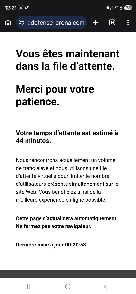 Jay718 Posted April 10, 2026 at 07:31 AM Posted April 10, 2026 at 07:31 AM The La Defense Arena Site brings you to the Ticketmaster Waiting room as does the Carrefour Spectacle Quote http://i258.photobucket.com/albums/hh275/Jay7180/im_13.jpg