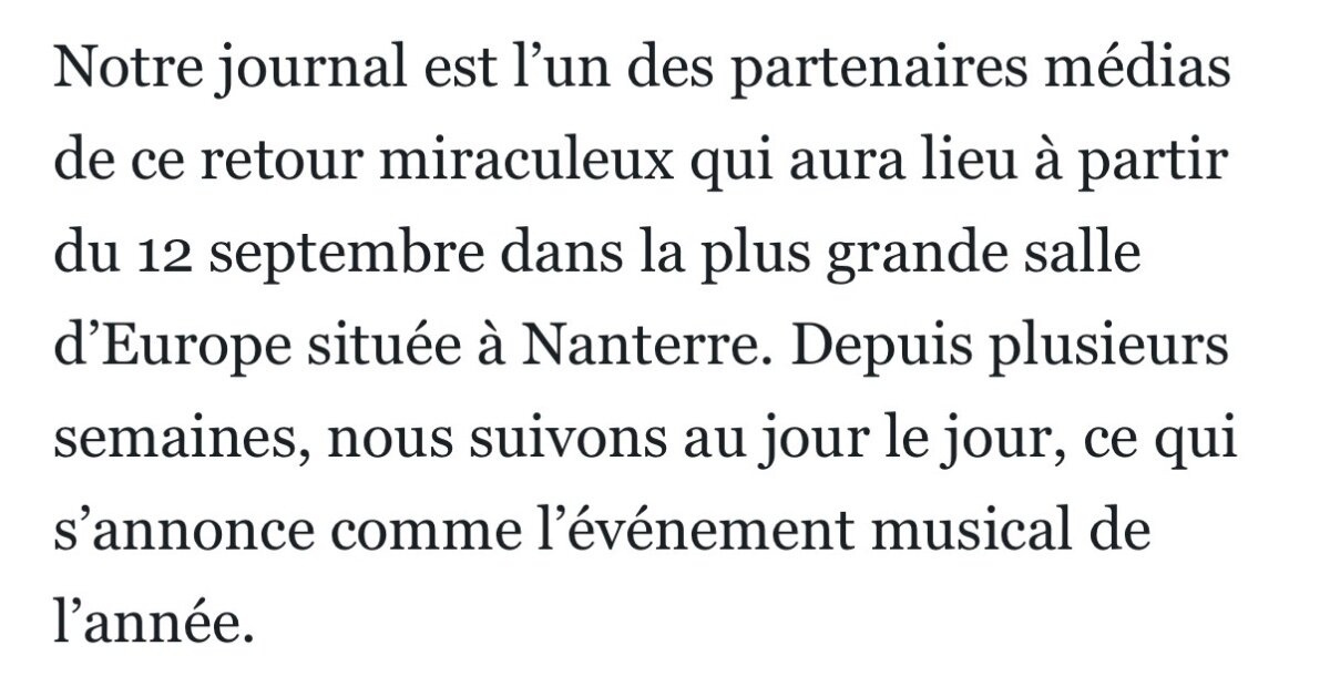Stéphane G. Posted April 15, 2026 at 11:24 AM Posted April 15, 2026 at 11:24 AM « C’est un challenge » : Céline Dion sera soutenue par une équipe médicale pendant ses concerts https://www.lepoint.fr/people/cest-un-challenge-celine-dion-sera-soutenue-par-une-equipe-medicale-pendant-ses-concerts-M5MPVOSNDJB5TDQMK3QKGFCUCU/ 4 2 Quote Paris Stade de France 20/06/1999 - Paris Bercy 25/05/2008 - Las Vegas Caesars Palace 18/06/2013 - Paris Bercy 26/11/2013
