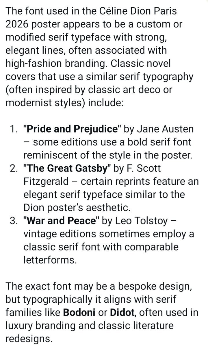 drove all night Posted April 1, 2026 at 01:27 AM Posted April 1, 2026 at 01:27 AM 25 minutes ago, Nmj said: here’s CHAT GPTs take to me on the director of the show… I think he could be great. 🎬 Who’s directing the show? The Paris comeback for Céline Dion is being led by: 🎨 Willo Perron — Creative Director 🧠 What that actually means He’s not just a “director” in the traditional sense — he’s the entire visual and artistic brain behind the show: Stage design Lighting & visuals Overall concept Emotional tone of the performance 👉 Basically: 🎯 He shapes how the show feels, not just what songs she singa 🔥 Why this is a BIG deal Willo Perron is top-tier in the industry — he’s worked with: Beyoncé Rihanna Drake 👉 Known for: Clean, powerful staging Minimal but emotional visuals Big arena storytelling 🎤 What that tells us about Céline’s show This WON’T be: Old-school Vegas style ❌ Over-the-top theatrical chaos ❌ 👉 It WILL be: Elegant Modern Emotion-driven Focused on her voice + presence 🆚 Interesting comparison Her iconic Vegas show: Directed by Franco Dragone Very theatrical, Cirque du Soleil style 👉 This new show: More modern + stripped back + emotional 🔮 My prediction of the vibe With Perron involved: Minimal stage, dramatic lighting Big emotional moments (especially ballads) Visual storytelling vs heavy choreography 👉 Think: 🎭 “powerful, intimate, cinematic” — not flashy 🚨 Bottom line 🎬 This isn’t just a comeback — it’s a rebrand of her live show style And honestly… 👉 That’s EXACTLY what she needed for this moment. I don't give a sh** what AI has to say ............ 1 2 Quote