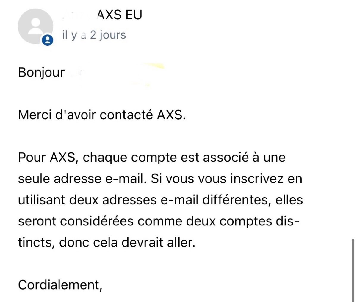 mirage Posted April 3, 2026 at 06:52 PM Posted April 3, 2026 at 06:52 PM 5 hours ago, Dancing_Queen said: Just came across the rules of the pre-sale on the AXS-facebook page. * You need to re-enter your card number when buying the tickets. The one you've used for the pre-sale will not be stored (meaning: if you had someone else enter for you, you don't need that person's card to make a purchase 😊) * Apparently, they check for double card numbers. So if you've tried multiple times with different cards, you should be fine. And if you've tried multiple times with the same card (even with a different name/e-mail), one inscription is valid, the rest will be thrown out. https://www.facebook.com/share/p/18iY6wTeGt/ Strange on Le Parisien they said it was only about registered emails. Anyway they could have been a bit more clearer before opening this lottery. 1 Quote
