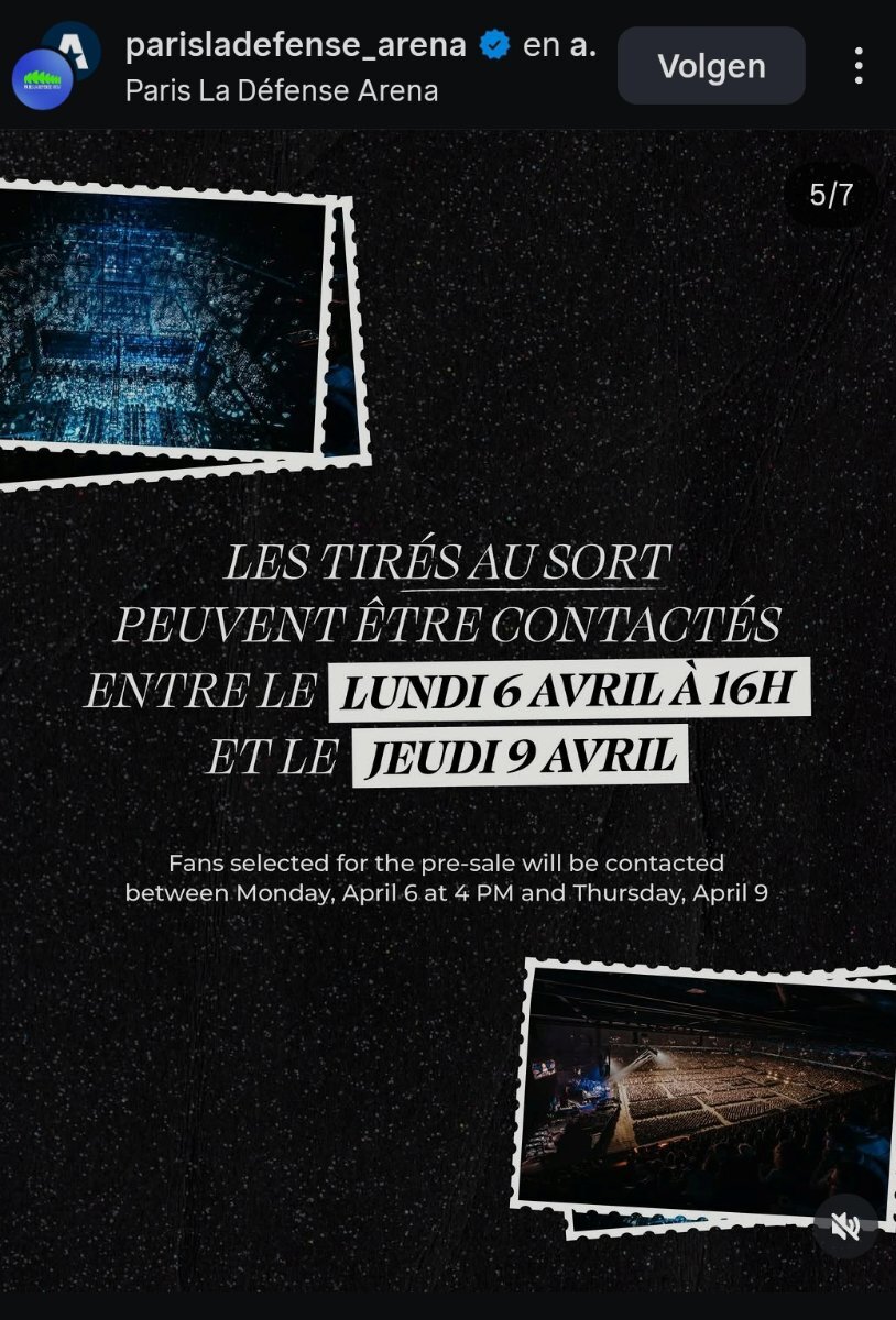 Davey84 Posted April 6, 2026 at 08:53 PM Posted April 6, 2026 at 08:53 PM I don't know if this was posted already but La Defense Area says people who subscribed to the presale can be contacted up to April 9th. So I wonder how this will turn out. https://www.instagram.com/p/DWzaPcuiIx7/?img_index=4&igsh=MWJ3NGNzb294Z2hibQ== 5 Quote http://img.photobucket.com/albums/v75/daveyh84/incognito198701_zpsaaootxh1.jpgRick, ik hou van jou voor altijd!A New Day... has come 28/29 April & 2/3 May 07Antwerpen 13 et 14 mai,Paris 24 et 25 mai, Amsterdam 2 juinet Arras 7 juillet Chances Taken!!!How Do You Keep The Music Playing? - Celine Opening Night March 15th, March 16th