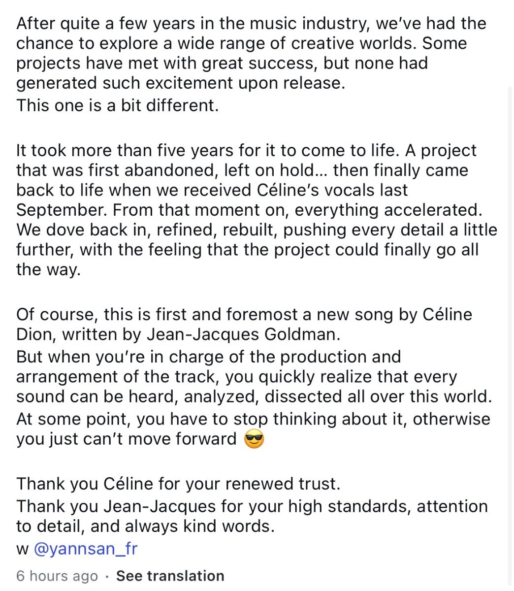 Daysleeper Posted April 17, 2026 at 06:14 PM Posted April 17, 2026 at 06:14 PM Whenever Céline released a new song, I would always share it with my mom. She loved her music, especially in French. I’m sure she would have loved “Dansons” just as much as I do. My mom passed away yesterday… and sadly, I didn’t get the chance to play it for her. This song now has a very special meaning to me. 6 40 Quote