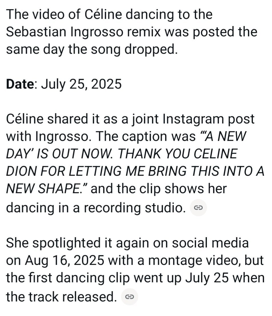 scarletpimpernel Posted April 18, 2026 at 12:32 PM Posted April 18, 2026 at 12:32 PM (edited) On 4/18/2026 at 10:22 PM, Dancing_Queen said: I just realized that Scott Price and Céline were probably working on Dansons when they recorded that tribute to Serge Fiori in July. What was the date in that video when she was dancing in the studio to Sebastian's New Day music Around July '25.. Edited April 18, 2026 at 12:34 PM by scarletpimpernel Quote